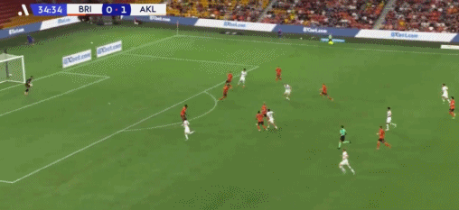 第73分钟,布鲁克精彩内切兜射破门,奥克兰FC2-0布里斯班狮吼