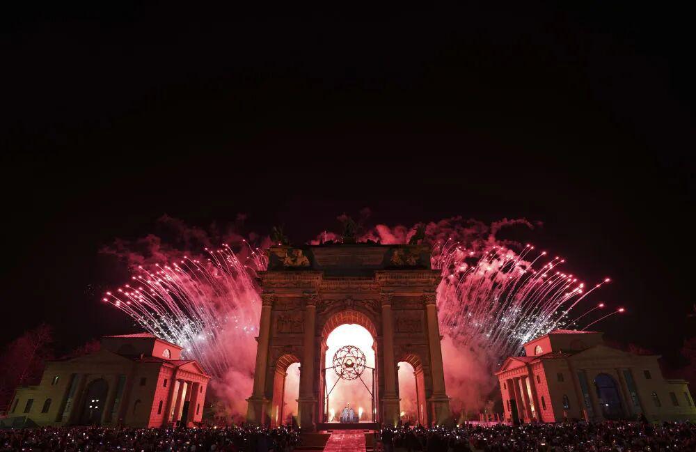 2月6日,在米兰和平拱门,主火炬被点燃。新华社记者 孙非 摄