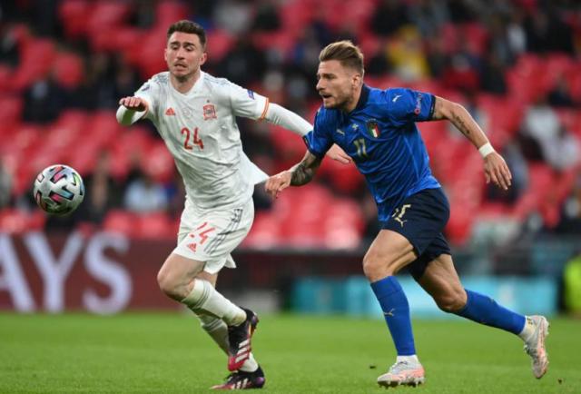 奥亚萨瓦尔,包括下半场替补换上的莫雷诺,都并非没有打中锋的能力。但在本届欧洲杯上,恩里克习惯将这类能够打中锋的球员放在右路,某种意义上是在维持禁区内抢点的能力,但对其他前场球员过度消耗。奥尔莫、费兰·托雷斯都是体能极为充沛的逼抢型球员,常规时间当中,他们一度让对手在中后场出不了球;但如果需要奥亚萨瓦尔抢点而非让他拿球射门,他的战术意识就不够。至于莫雷诺,则很容易被淹没在意大利的严密防守中。