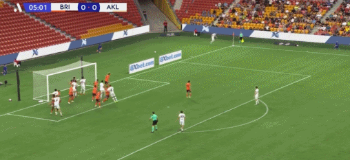 第73分钟,布鲁克精彩内切兜射破门,奥克兰FC2-0布里斯班狮吼
